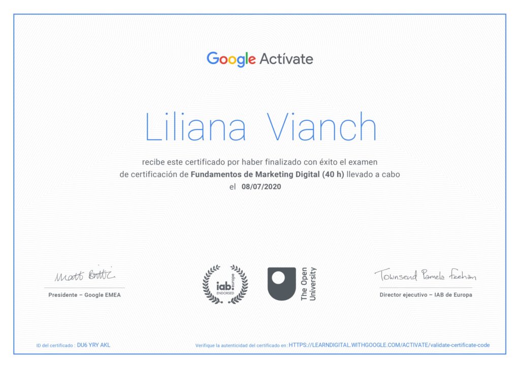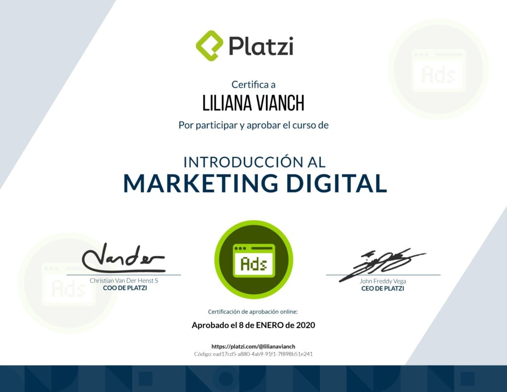 La experiencia es importante, pero la preparación también lo es. Me mantengo en constante actualización para ofrecerte estrategias digitales que no solo funcionan, sino que están respaldadas por metodologías actuales, plataformas oficiales y herramientas lideres del mercado.